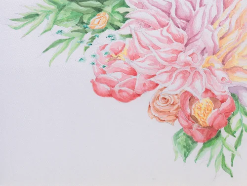 A custom watercolor painting for a family member’s wedding. Incorporated into the invitations, ceremony programs and reception dinner menus.